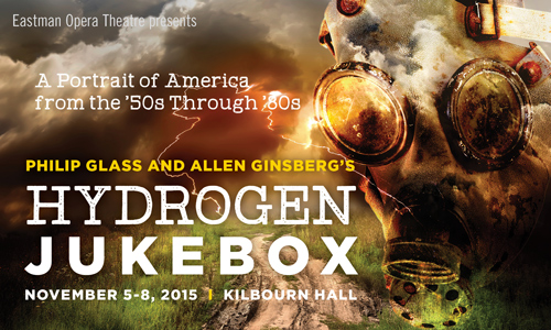 The seismic shifts in America’s cultural and political landscapes are reflected in words and music in Hydrogen Jukebox, a music theatre piece that will be presented by Eastman Opera Theatre November 5 through 8 in the Eastman School of Music’s Kilbourn Hall. Setting the counterculture poems of Allen Ginsberg to the repetitive structures of Philip…