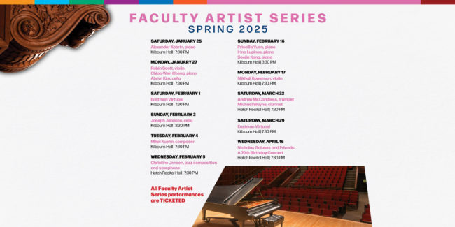 The Faculty Artist Series presents Eastman’s internationally celebrated faculty with a platform to showcase their exceptional talent and artistry.