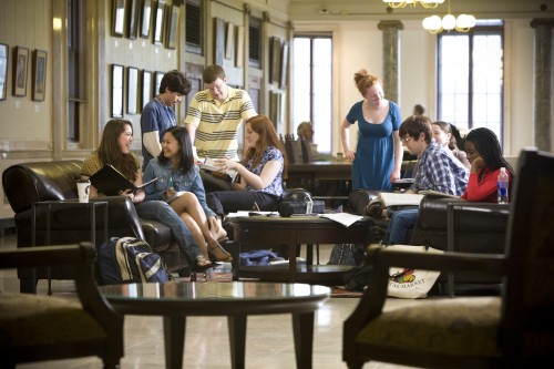The grand hallway on the second floor of the School’s Main building is named for the first graduate of the Eastman School of Music, Roslyn Weisburg Cominsky. It functions as a study space, meeting place, and large reception hall. Portraits of retired faculty members who have played a prominent role in the School’s history are found here.