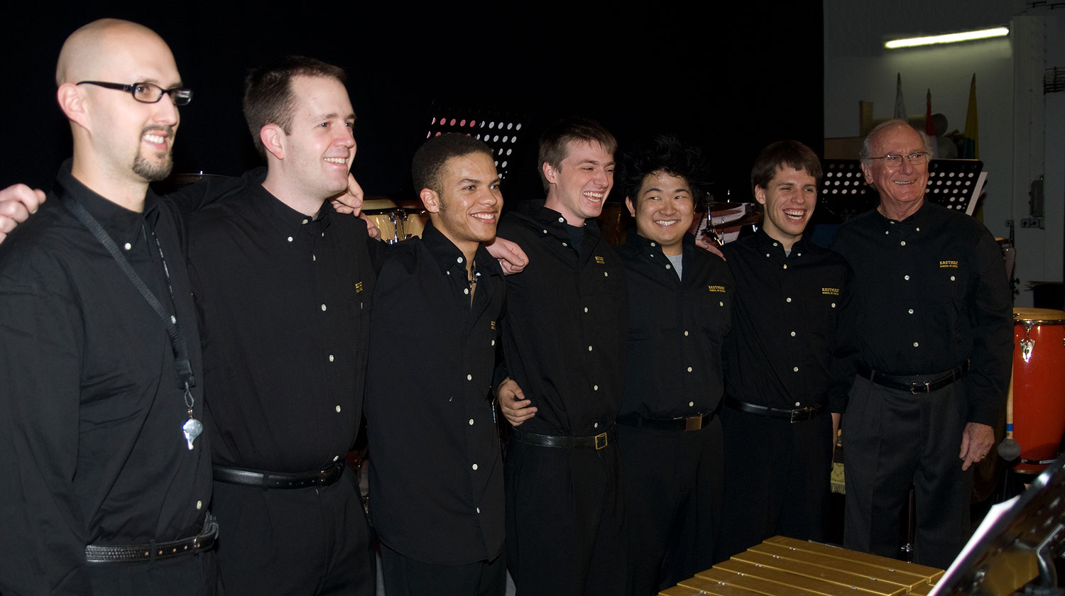 In January 2008, John Beck, who recently retired as Eastman’s professor of percussion, and six Eastman students – seniors Kyle Acuncius, Christopher Slagle, Brian Heveron-Smith, and Richard Williams, and graduate students Robert Sanderl and Jacob Thieben – traveled to Bjelovar, Croatia, to participate in International Percussion Ensemble Week (IPEW). The Eastman Percussion Ensemble was invited by Igor Lesnik, professor of percussion at the Music Conservatory and a frequent guest at Eastman. The group’s concert program included music by alumni Phillip Mikula (BM ’97), Tom Nazziola (BM ’88), and Bob Becker (BM ’69, MM ’71).