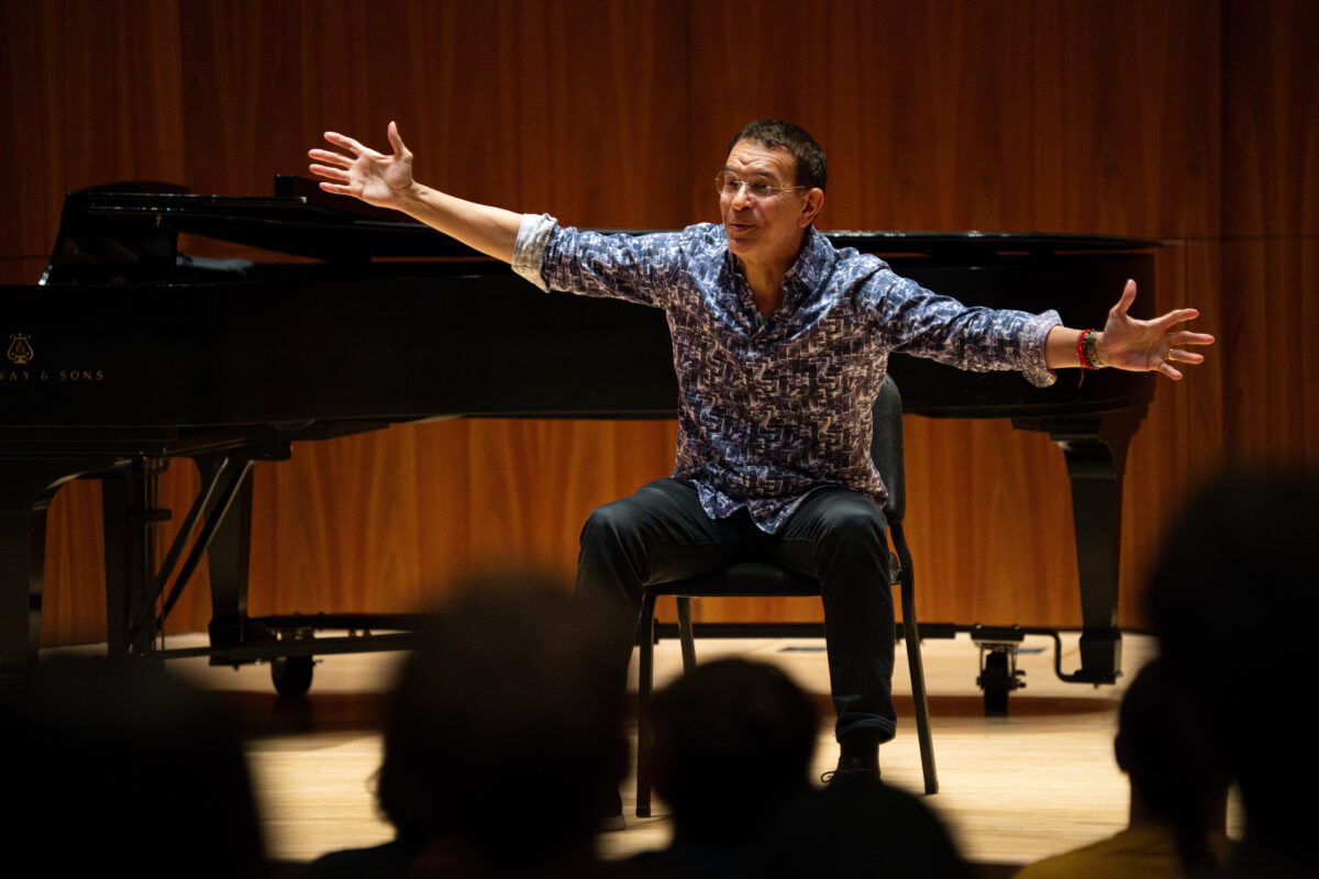 At the beginning of the academic year, I always look forward to the featured performance at Convocation. Very often, this is an opportunity for a new faculty member to be introduced to the ESM community, and this year we were graced by the talents of some of our Jazz & Contemporary Media professors. Notably included was our new Associate Professor of Jazz Drum Set Otis Brown III—the joy he exudes in this photo aligns with the warm energy that we hope all Eastman students feel from their studio faculty.