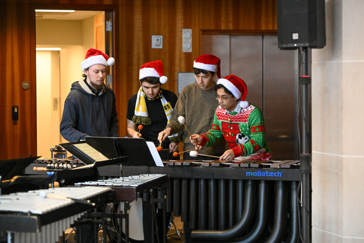 As neat as it already is seeing four people at one marimba, this instance was especially endearing. Perhaps emphasized since it was during Holiday Sing, but it was reminiscent of people gathered around a fire, coming together for shared warmth in the winter.Â