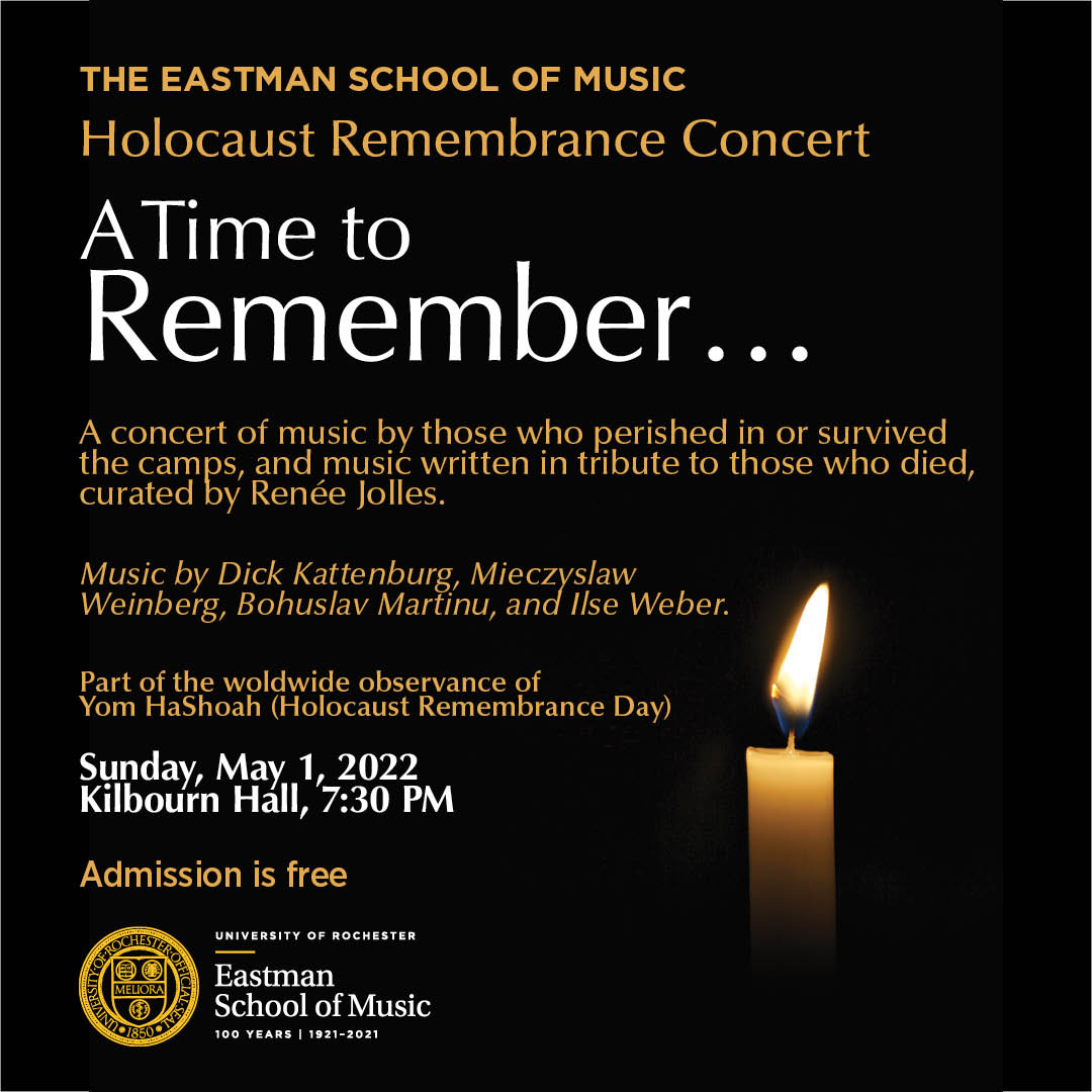 The Eastman School of Music Presents Sixth Annual Holocaust Remembrance Concert: “A Time to Remember…”