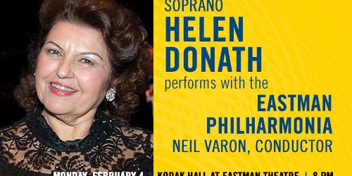 Soprano Helen Donath, whose distinguished career spans more than five decades and continues to elicit critical acclaim, will join the Eastman School of Music’s Philharmonia, under conductor Neil Varon, for a performance of Mahler’s Symphony No. 4 at 8 p.m. Monday, Feb. 4, in Kodak Hall at Eastman Theatre.