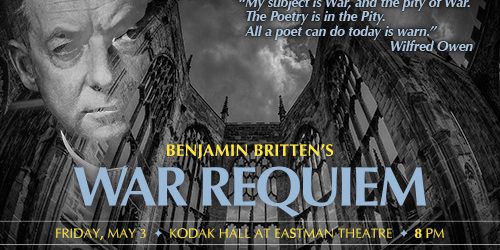 Benjamin Britten’s War Requiem, a powerful choral masterpiece denouncing war and honoring the fallen, will be presented by the Eastman School of Music at 8 p.m. Friday, May 3, in Kodak Hall at Eastman Theatre.