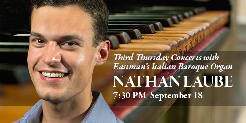 Concert organist and Eastman School of Music faculty member Nathan Laube will present “Rochester’s Italian Baroque Organ, A Musical Cosmopolite”at 7:30 p.m. on Thursday, Sept. 18, in the Fountain Court at the Memorial Art Gallery.Featuring works by Cabanilles, Frescobaldi, Phillips, Rameau, Rossi, and others, the concert opens the 2014-2015 season of Third Thursday Concerts on Eastman’s Italian Baroque Organ at the gallery.