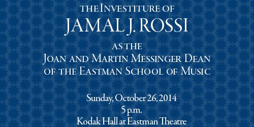 Jazz and classical music performances by faculty, including the dean himself, will highlight the formal investiture of Jamal J. Rossi as the Joan and Martin Messinger Dean of the University of Rochester’s Eastman School of Music.