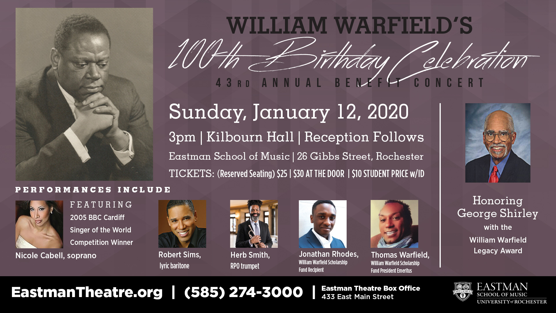For more information on the William Warfield Scholarship Fund: www.williamwarfield.org; https://www.facebook.com/williamwarfieldscholarshipfund/ or info@williamwarfield.org.