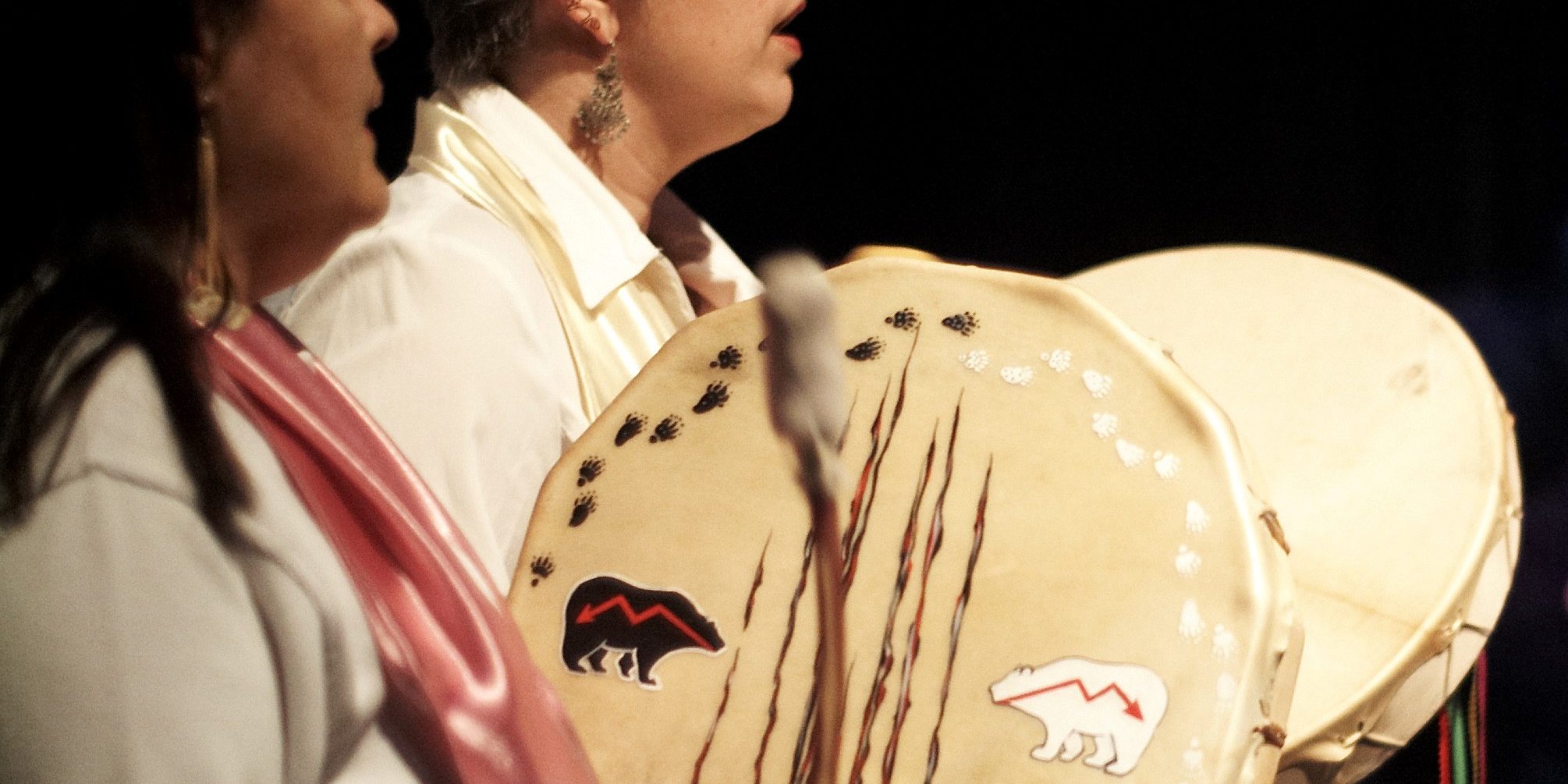 Hand-Drum Singers at Trent University, Peterborough, Ontario. Photo credit: Esther Vincent, Peterborough, Ontario