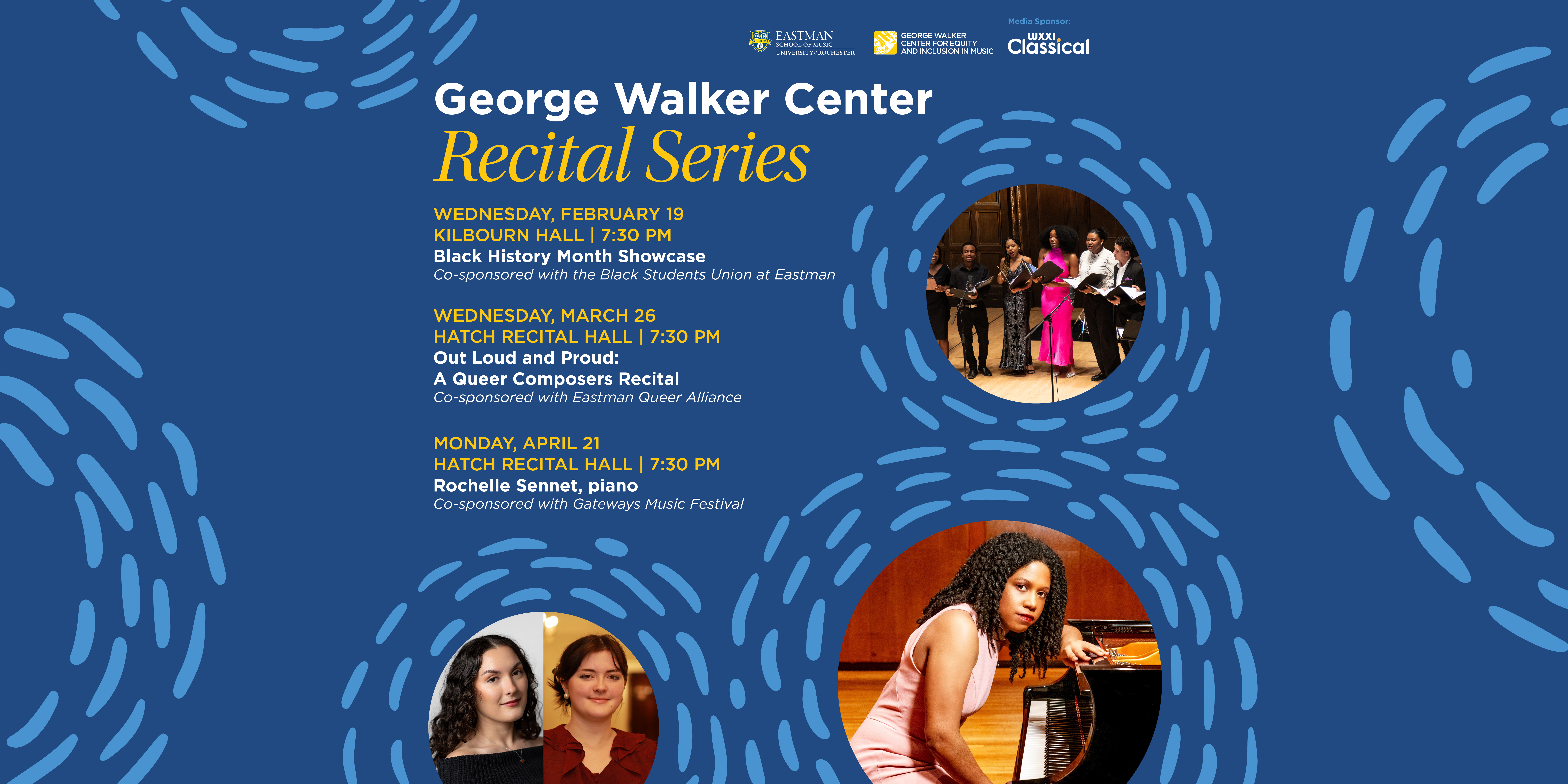 The George Walker Center Recital Series presents a celebration of LGBTQ+ performers and composers, featuring many students from the Eastman Queer Alliance (EQ).