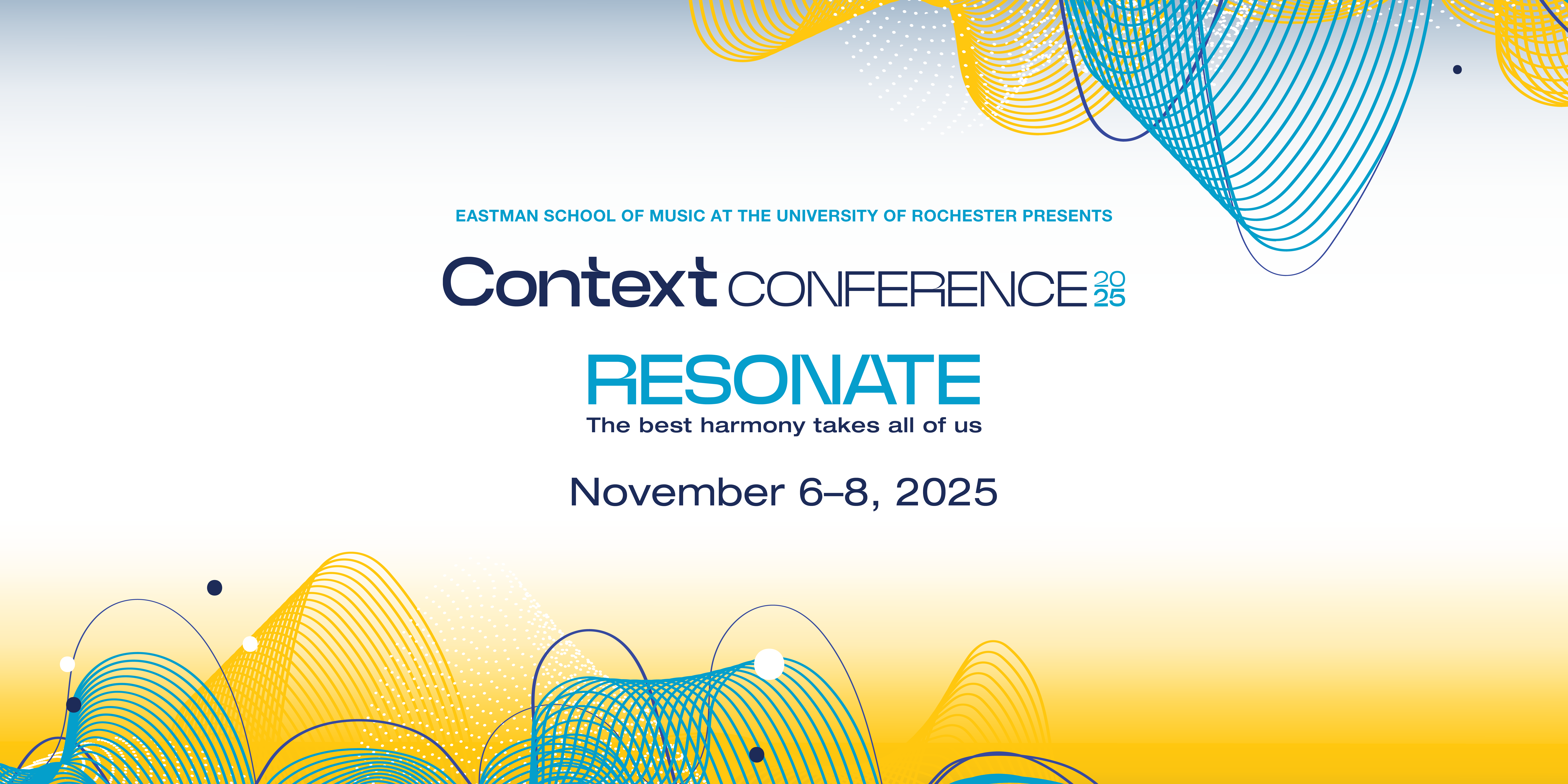 The Eastman School of Music at the University of Rochester is proud to announce that it will host its second Context Conference on November 6-8, 2025, in Rochester, NY. Context Conference asks, “What education or opportunities do we need to facilitate from a young age to usher a musician through their professional life.” This year’s theme, Resonate: The best harmony takes all of us, frames how we can use music to educate and engage our communities from K-12 through professional-level organizations.