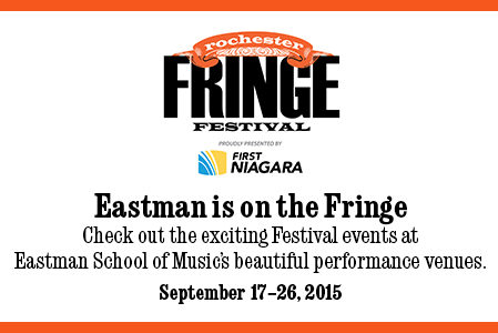 The Eastman School of Music will host 9 shows in its venues during the First Niagara Rochester Fringe Festival Sept. 17 to 26. Eastman faculty, students, and staff will also perform at other venues in and around downtown Rochester during this year’s event. For more on both Eastman and University of Rochester participation in…