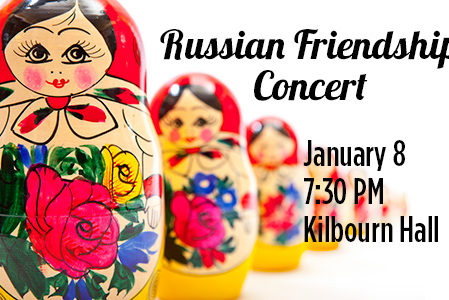 The Eastman Community Music School (ECMS) and Linkages of Rochester, Inc., will celebrate the connections between Rochester and Rochester’s Sister City of Veliky Novgorod with a concert at 7:30 p.m. Thursday, Jan.  8, in Kilbourn Hall.  Held on the day after Russians celebrate Christmas according to the Julian calendar, the Russian Friendship Concert features Eastman…