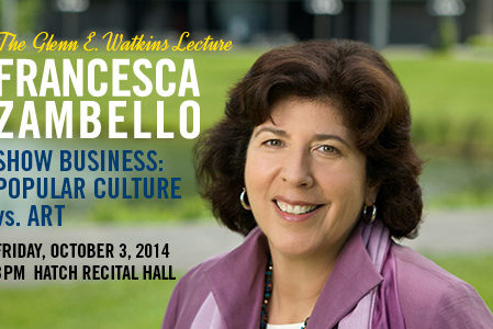 Francesca Zambello, artistic director of the Washington National Opera and artistic and general director of the Glimmerglass Opera, will give the Eastman School of Music’s 2014 Glenn E. Watkins Lecture on Friday, Oct. 3, at 3 p.m. in the school’s Hatch Recital Hall. Zambello’s lecture, titled “Show Business: Popular Culture vs. Art,” will be followed…