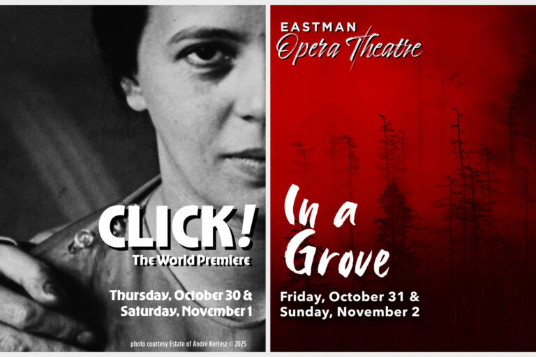 Eastman Opera Theatre presents the world premiere of “CLICK!” and Eastman debut of “In a Grove” Oct. 31-Nov. 2, 2025 in Kilbourn Hall.