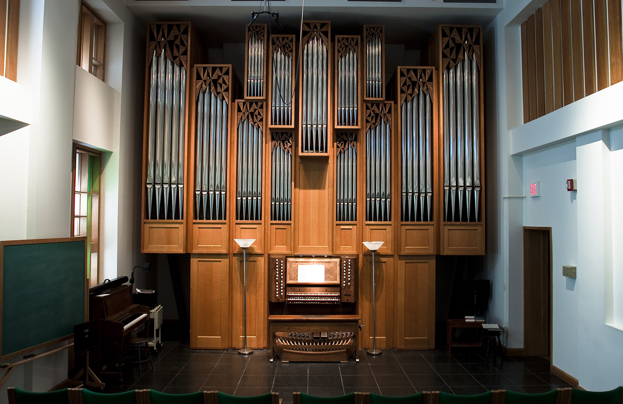 14 practice organs by builders including Aeolian-Skinner, Andover, Flentrop, Fritts, Goetze and Gwynn, Holtkamp, Möller, Schlicker, Wahl, and Wangerin, located on the fourth floor of Eastman’s Main Building