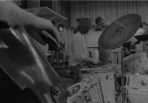 Forty-five years ago this week, in these photographs taken on September 29th, 1976, the members of the Eastman New Jazz Ensemble are seen rehearsing in Room 120 (today known as the Rayburn Wright Room). The ENJE would perform a joint concert with the EJE on October 8th, 1976 in the Eastman Theater (concert program displayed herewith). At this time the Eastman New Jazz Ensemble was still a new venture, having made its public debut in a joint concert with the Eastman Jazz Ensemble on October 17th, 1975.