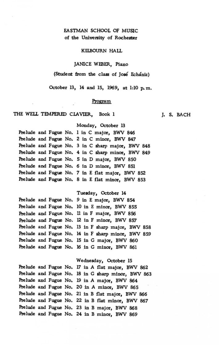 52 years ago this week, on October 15th, 1969, a large-scale demonstration known officially as the Moratorium to End the War in Vietnam was staged in many cities and towns both at home in the USA and in other parts of the world. It was, simply put, a day of coordinated expression of opposition to the American military involvement in Vietnam. The Moratorium’s organizers had specifically aimed to take the event into communities across the nation, and in so doing, had sought the support of community centers, churches, schools, labor leaders, and other representatives. Historians of the war in Vietnam would acknowledge the Moratorium as having transformed the nation’s anti-war protests into a fully fledged movement. Fully one quarter million people gathered in Washington, D.C. where a candlelight procession was led by Coretta Scott King, widow of Dr. Martin Luther King, Jr. On many university and college campuses, the Moratorium was observed by means of rallies, marches, and prayer vigils. At the University of Rochester, then-Senator Charles Goodell (R-NY), an outspoken opponent of the Vietnam war, arrived on campus and spoke to a vast crowd at the Palestra. At the Eastman School of Music, observance of the Moratorium took the form of a four-hour concert in Kilbourn Hall, entirely organized by the student body. The event began with a brass fanfare outside on Gibbs Street and then continued inside Kilbourn Hall with an hour of chamber music, two hours of orchestral music, and then one more hour of chamber music. The presentation of music proceeded non-stop and, by request of the performers, without applause. Free of charge and open to the public, the concert was attended by a large audience from start to finish.