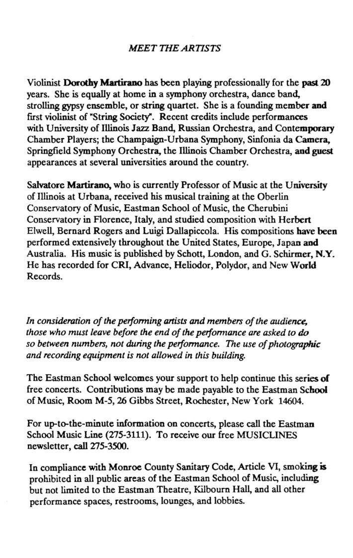 ►October 11, 1983: Shura Cherkassky, Piano. Mr. Cherkassky would later accompany the Eastman Philharmonia on a German tour in 1986