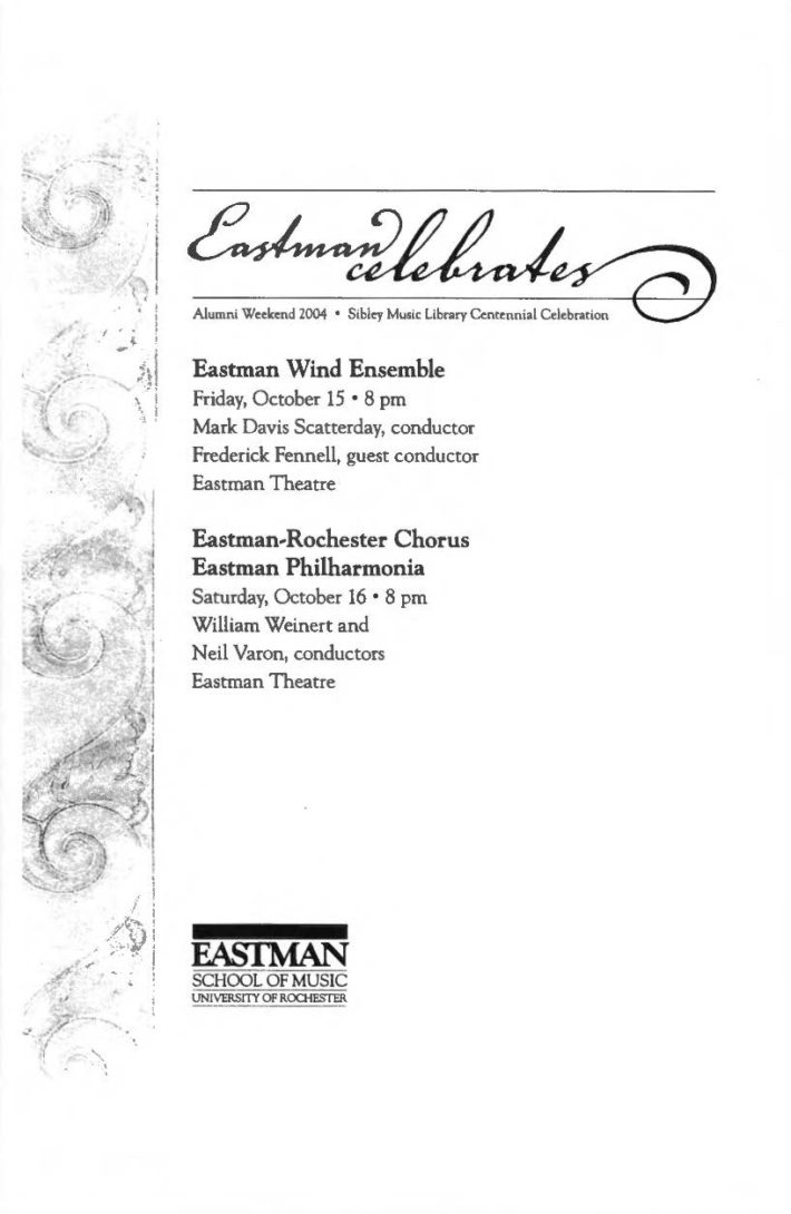 ►October 16, 2004: ESM Alumnus Dominick Argento, PhD ’58, had been commissioned to compose a work celebrating the Sibley Music Library on the occasion of its centenary (1904-2004).
