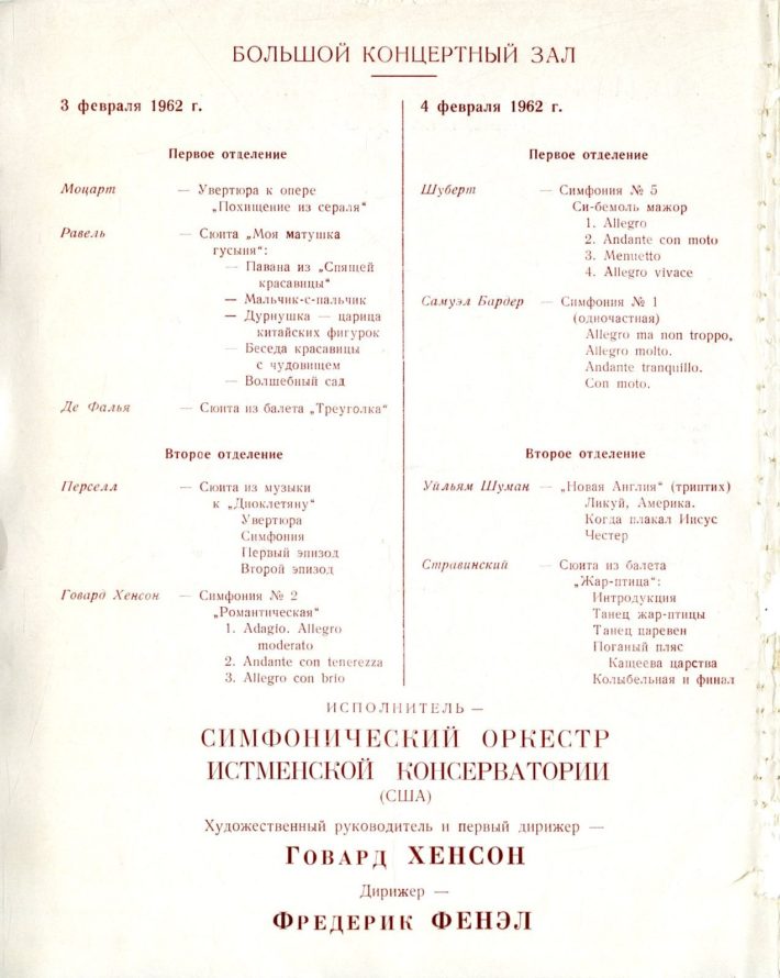 With the tour now in its third month, it is perhaps not surprising that the strains of travel, of food-borne illness and other ailments, and of living together at close quarters were finally taking a toll. Again, in Mr. Rodean’s words: “I think the length of the tour is beginning to show. The smallest incidents become grand episodes. Generally, everyone is becoming less tolerant of each other both musically and in living together.” One entry during the days in Kishinev recounts an anecdote that Philharmonia members had taken to placing bets with one another on the duration in any given performance of Hanson’s “Romantic” Symphony, which had a regular place on concert programs during the tour. “There seems to be renewed interest in the work since this started. Tonight I think I’m right in saying more people were watching their watch than were looking at Hanson.” Life in a touring ensemble.