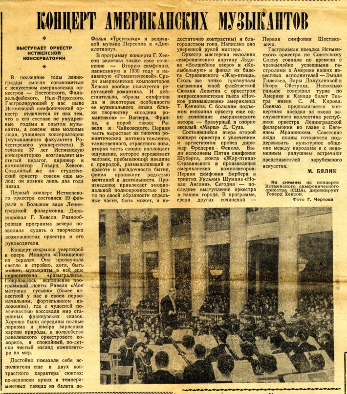 The Eastman Philharmonia gave three concerts in Leningrad—on the evenings of February 19th, 20th, and 21st. These were the last scheduled performances of the tour, the orchestra’s farewell to their Russian audiences. Next stop: Moscow.
