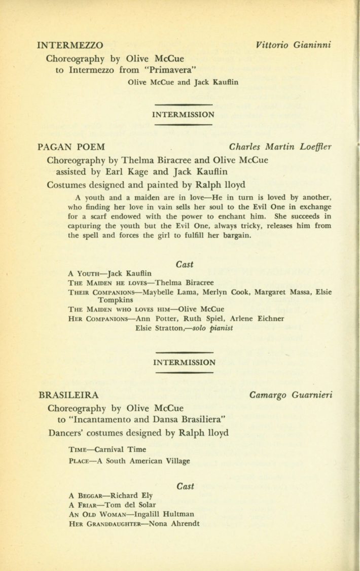 The program invites some comment. I believe the opening work, Jack End’s own Concert Suite, to have been newly composed for this event; I have found no evidence of any previous performance at Eastman. Paul Nero’s Prelude and Allegro for Hot Fiddle had already had one hearing in an Eastman School degree recital when M.Mus. degree candidate Rima Rudina, a student of Jacques Gordon, had performed it in 1944. (The printed program’s indication of “first performance” confirms what had traditionally been the Eastman School’s position with respect to public vs. private performances; degree recitals fell into the latter category.) Two American Stereotypes by Rayburn Wright, BM ’43, drew a tart comment from reviewer Norman Nairn, but don’t take it from me; the review is displayed here. The Dance Tunes that closed out the concert’s second half included an instance of what Hanson had alluded to earlier, namely, the jazzing of his Symphonies; “The Whispering Wind” borrowed a theme from his “Romantic” Symphony, and indeed, the program notes openly informed the audience of such.