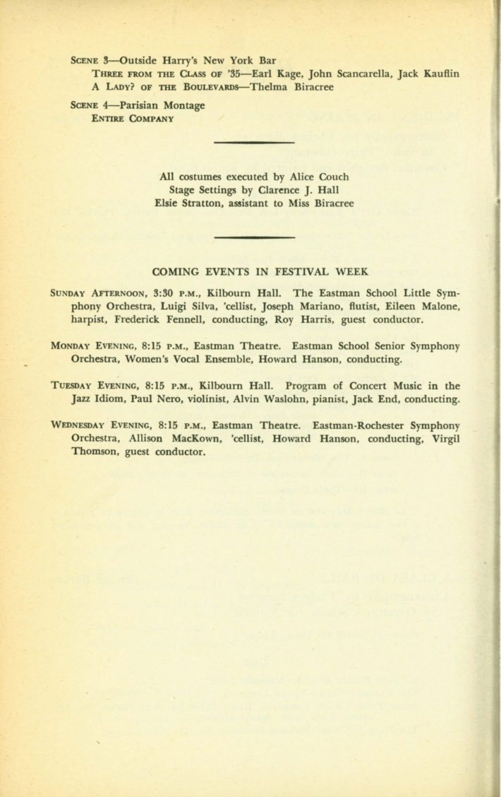Printed program for the Graduation Recital with Orchestra in which Jack End fulfilled one of the performance requirements for the Performer’s Certificate. Director Hanson had inaugurated the Graduation Recitals with Orchestra (later Graduation Concerts with Orchestra) as a performance vehicle whereby the Eastman School would showcase its highest-achieving performers. .