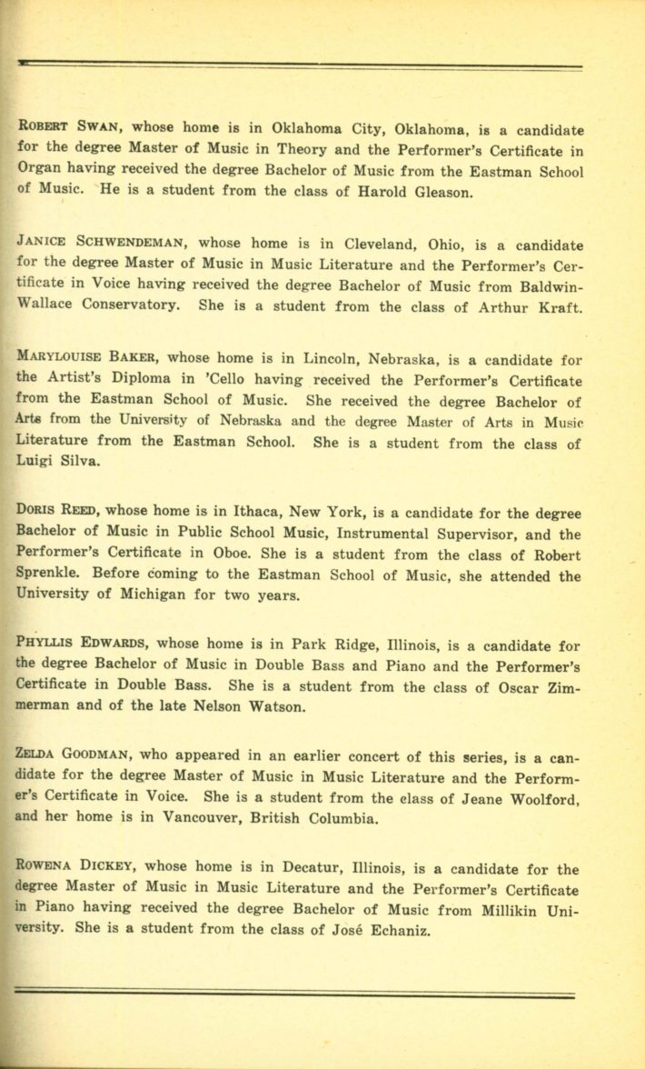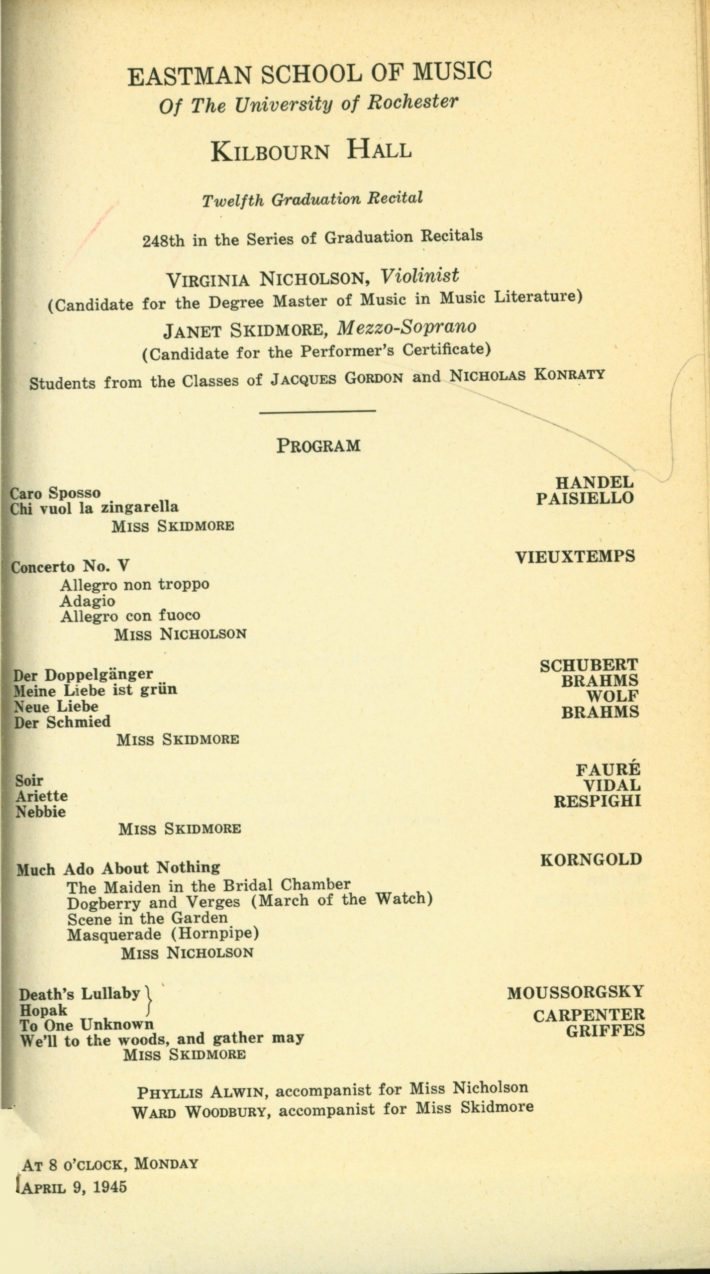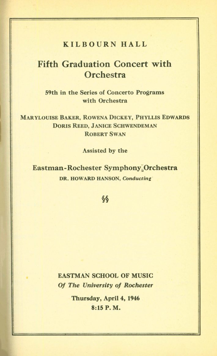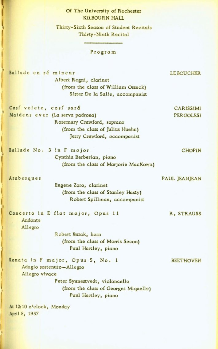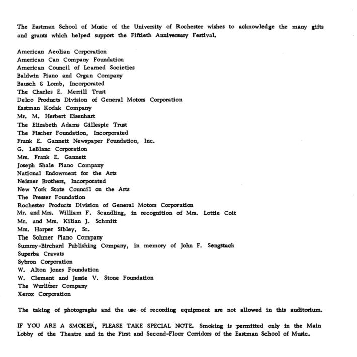 [2] The Score 1969, page [107]. This issue is digitally accessible (together with all of the Eastman School’s yearbooks published since 1925) at the homepage of the University of Rochester Libraries Digital Collections.