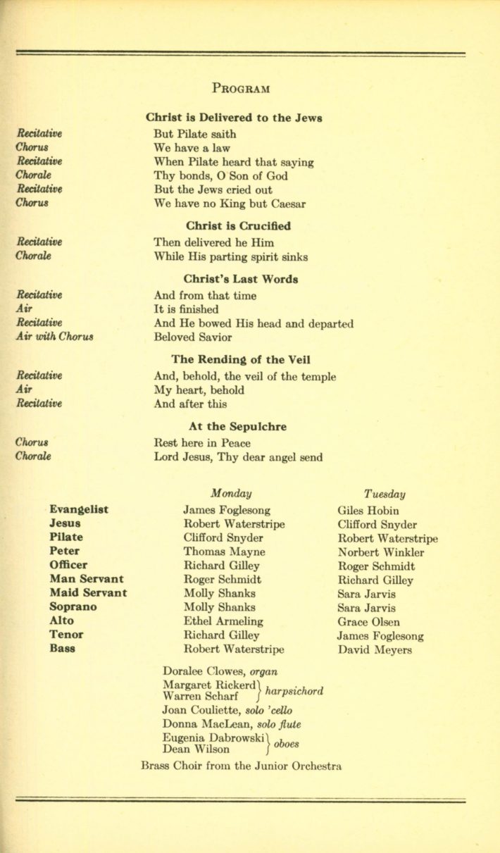 For three of the student participants, the memorial held meaningful associations with memorials held on the day of Dr. King’s funeral in 1968. Soprano Esther Satterfield had performed at the 1968 memorial in Kilbourn Hall, and also at that event, Paul Burgett—at that time president of the Student Association—had been the principal speaker to eulogize Dr. King. Baritone Joseph Bias had been a senior at Morehouse College in Atlanta (Dr. King’s own alma mater) in the spring of 1968, had been one of the soloists at that institution’s funeral service for Dr. King.