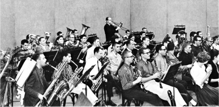 Photo of the EWE that was published in the Eastman School’s 1962 yearbook. Assuming this to have been a contemporaneous photo, these are the players who performed in Carnegie Hall in 1962. The Score 1962, Eastman School of Music Archives.
