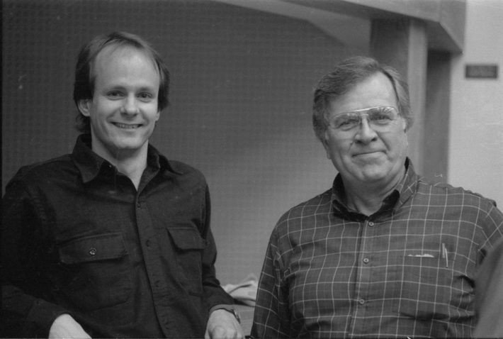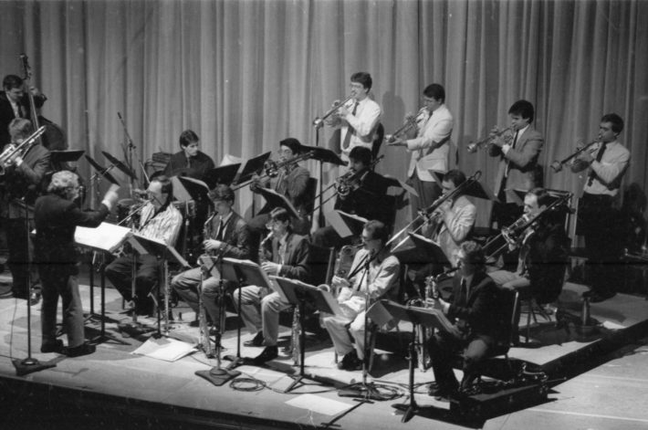 Previously in “This Week at Eastman” I’ve featured some of the various types of gatherings that happen at Eastman, whether in tribute to some esteemed individual, or in memory of one departed, or honoring an artist following his/her/their performance, and – quietly famously at Eastman – at the unveiling of a faculty member’s portrait. Tributes can take any of several different forms, including musical performance. And so it was on the evening of Saturday, April 21st, 1990, thirty-three years ago this week, when a special concert promoted as “Three Decades of Eastman Jazz: A Tribute to Rayburn Wright” celebrated the life and career of the late Rayburn Wright, who had died several weeks earlier.