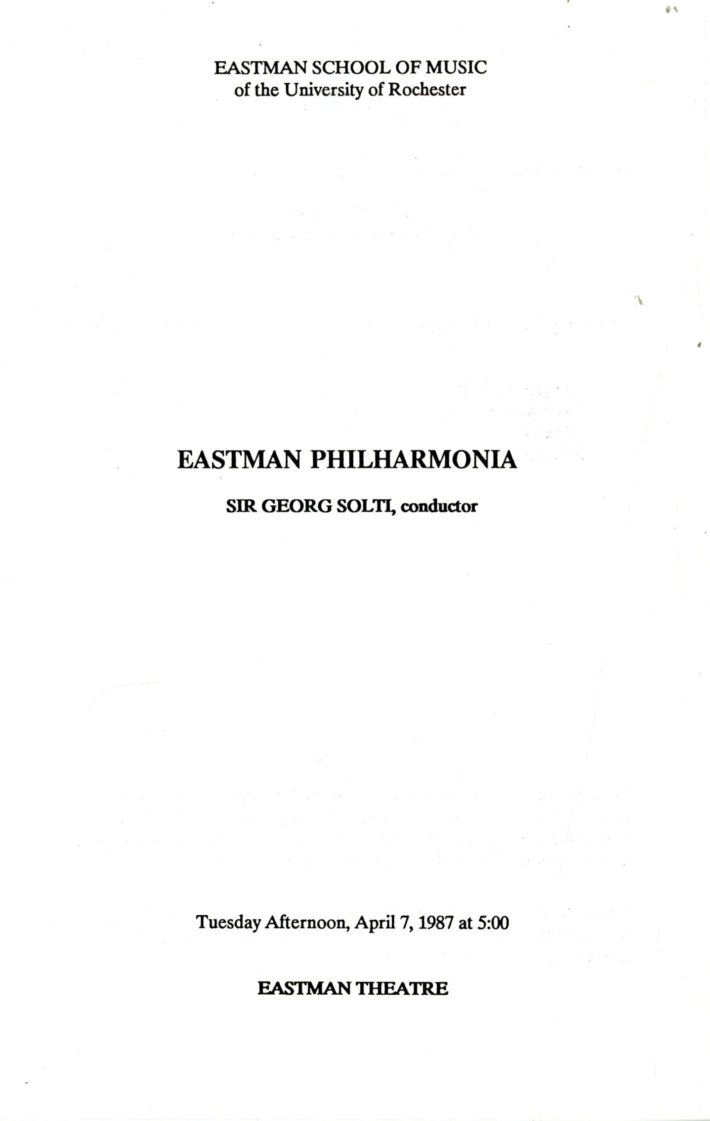 [1] Maestro Solti’s appearance at Eastman was reported in Eastman Notes, volume 20, no. 1, pages 3-4.