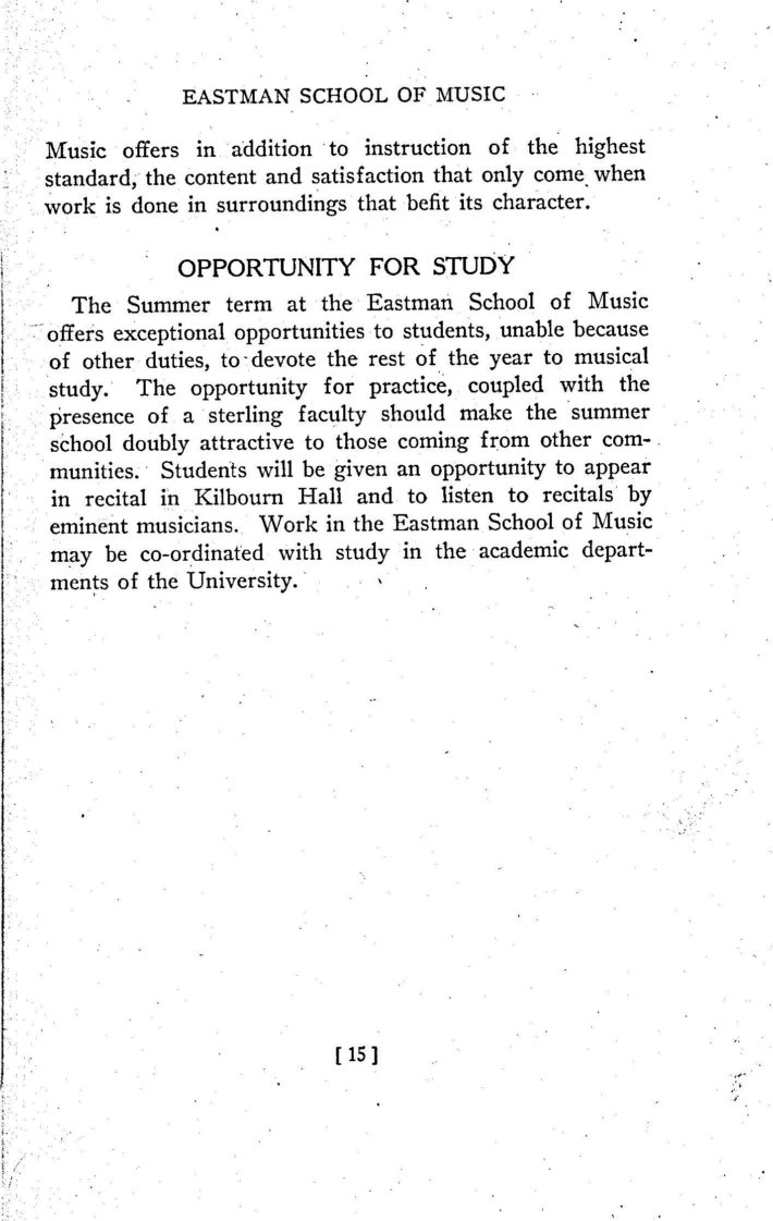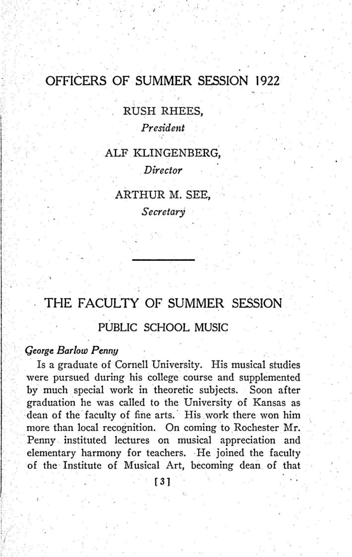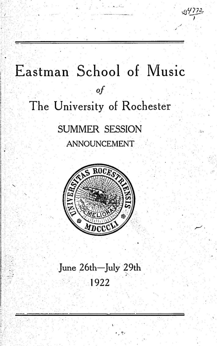 Whereas the Official Bulletins for the Eastman summer session in later years would run to almost 100 pages, the Official Bulletin for 1922 took up only 15 pages of printed copy.