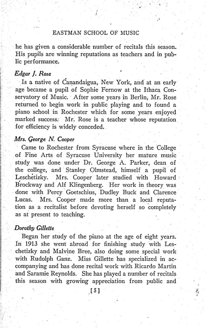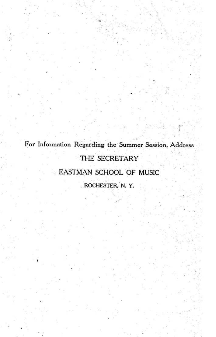 [5] “Summer session of Eastman School of Music to open to-morrow; courses for teachers of music in public schools.” Rochester Democrat & Chronicle, June 25, 1922. Preserved in Eastman Theater Scrapbook no. 1, p. 17. Sibley Music Library.