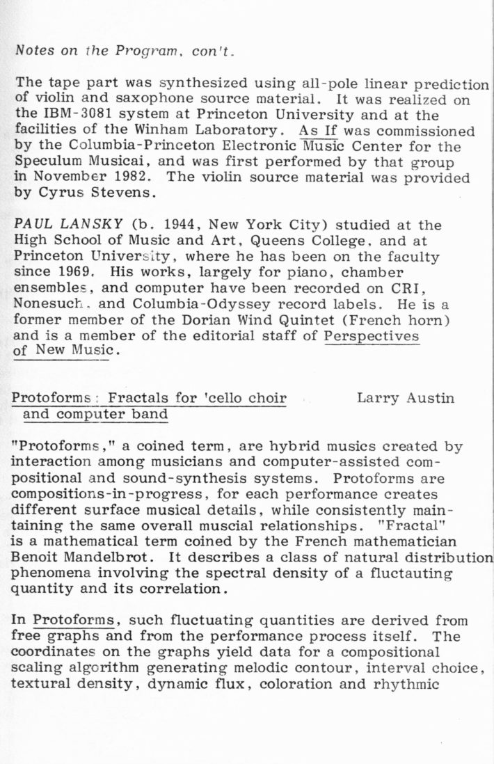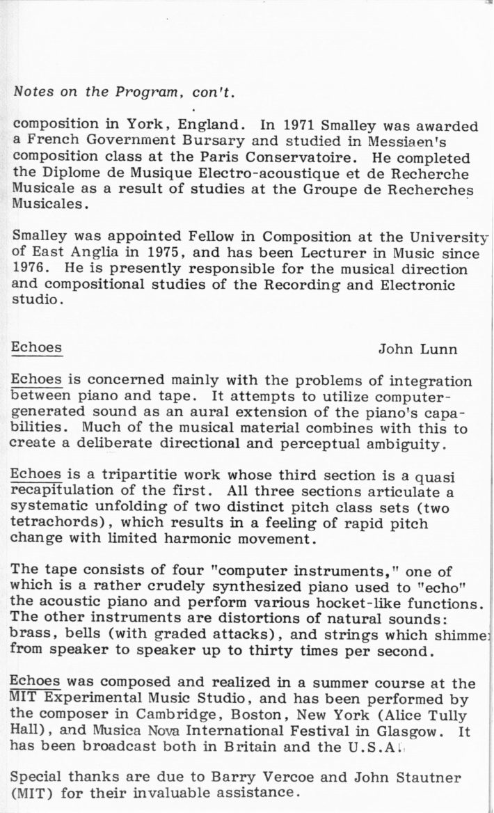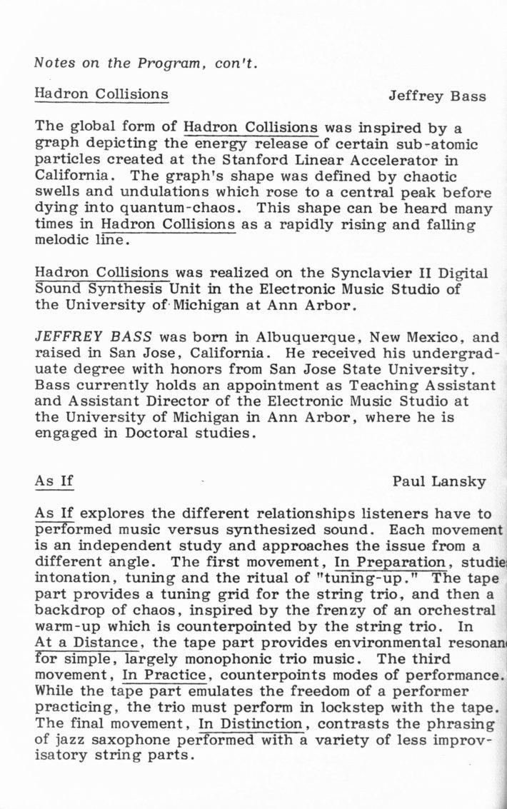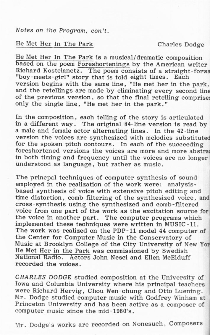 [5] Allan Schindler, “A (not so brief) History of the Eastman Computer Music Center,” in Eastman Computer Music Center: 25th Anniversary Concert Series (Rochester, NY: Eastman School of Music, 2007).