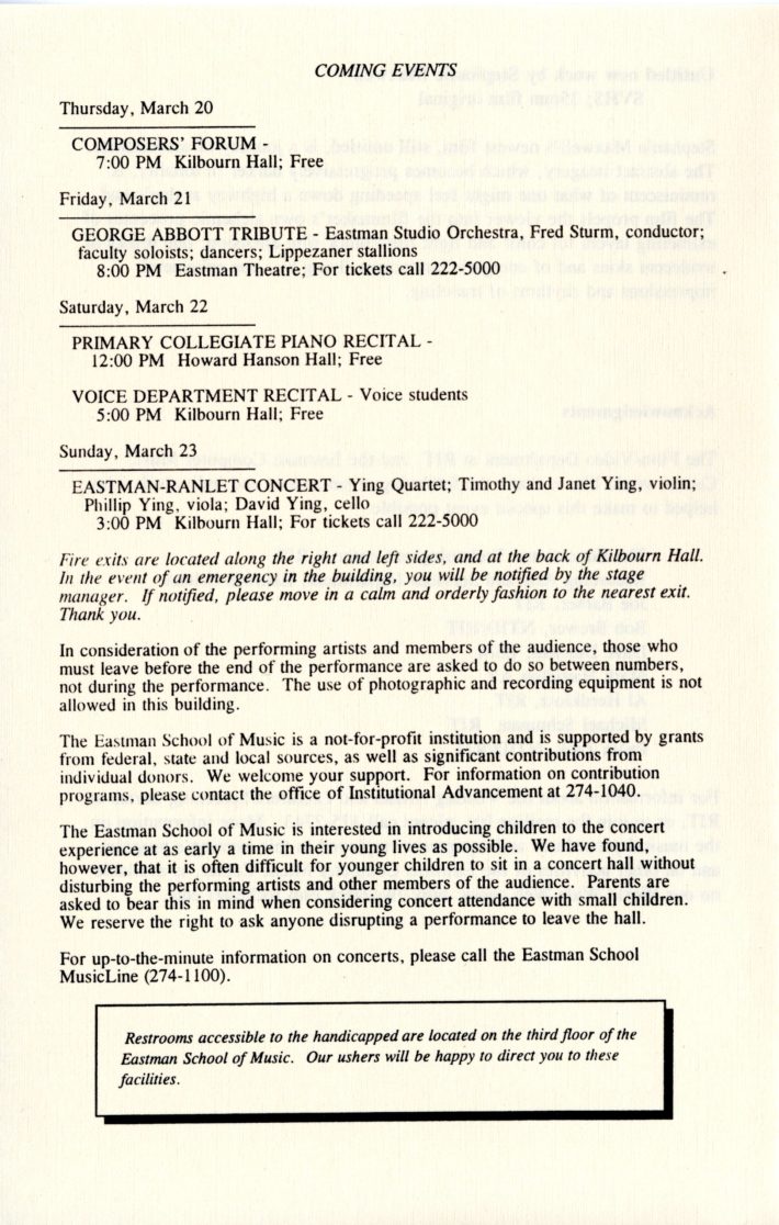 [3] Allan Schindler, “String Sextet,” The page also includes a link to an audio excerpt of the Sextet’s conclusion from the OSSIA ensemble’s March 21, 2003, performance in Eastman’s Kilbourn Hall