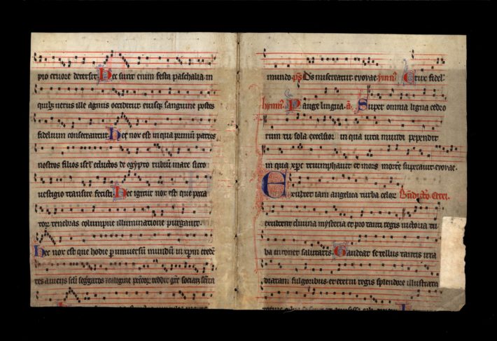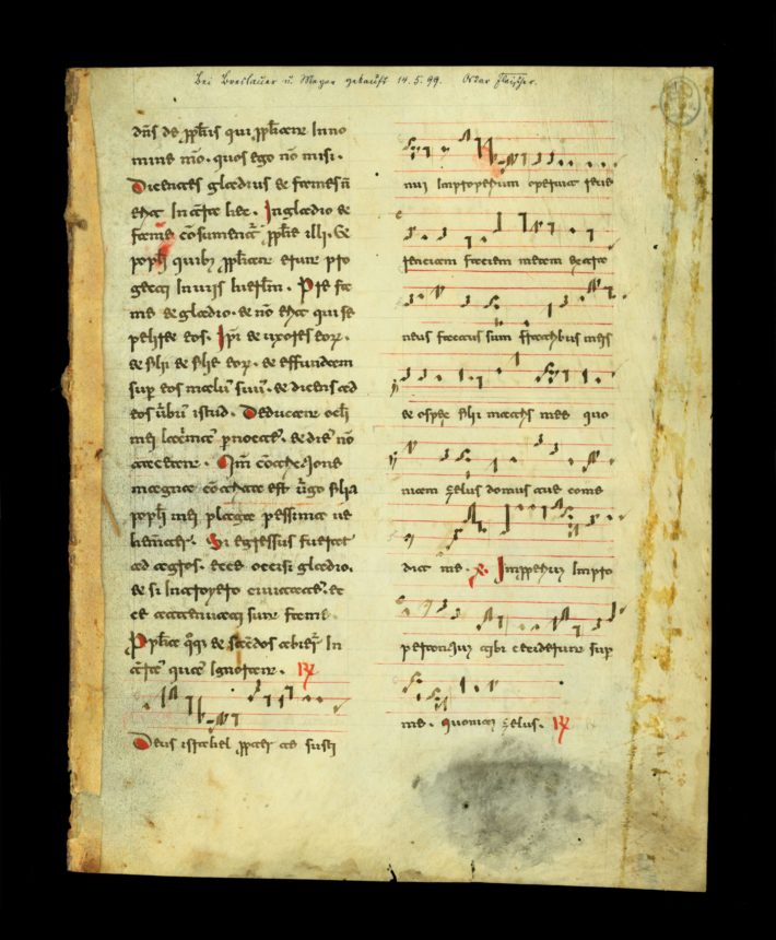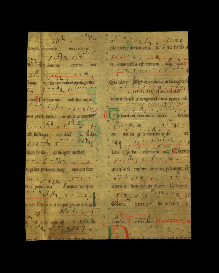 This collection originated with the German musicologist Oskar Fleischer (1856–1933), who compiled these samples of music notation in the course of his research on the development of medieval music notation systems. Most of the items in the collection are individual manuscript leaves that were extracted from larger works, and some items are accompanied by handwritten descriptive notes in German (in Fleischer’s hand). Sibley Music Library purchased this collection at the June 1929 auction of Werner Wolffheim’s extensive private library of music manuscripts and treatises; Wolffheim had studied musicology with Fleischer at the University of Berlin. The collection contains manuscripts that represent diverse styles of music notation from ca. 1000-1600 and, as such, is an outstanding teaching tool for the study of the history of music notation.