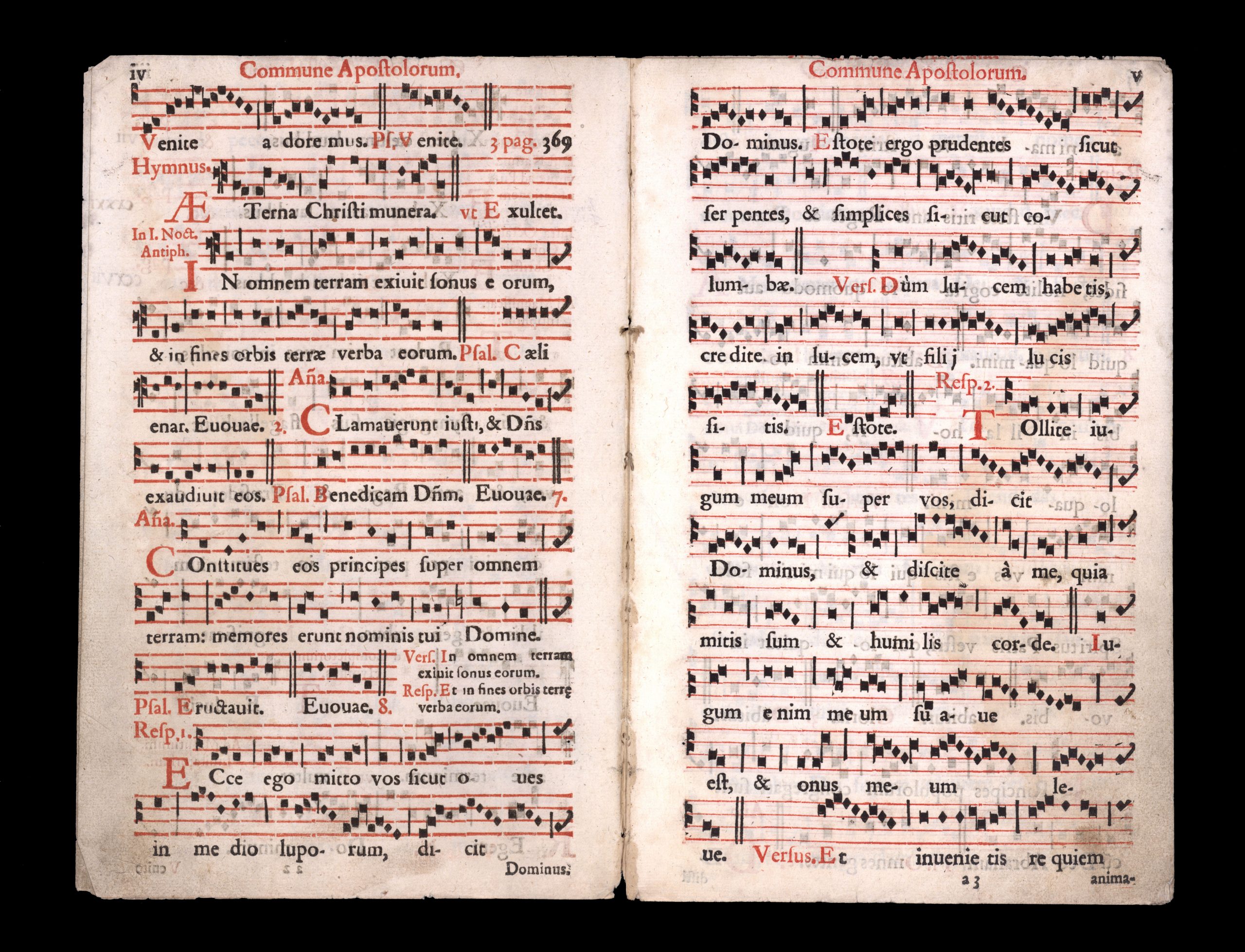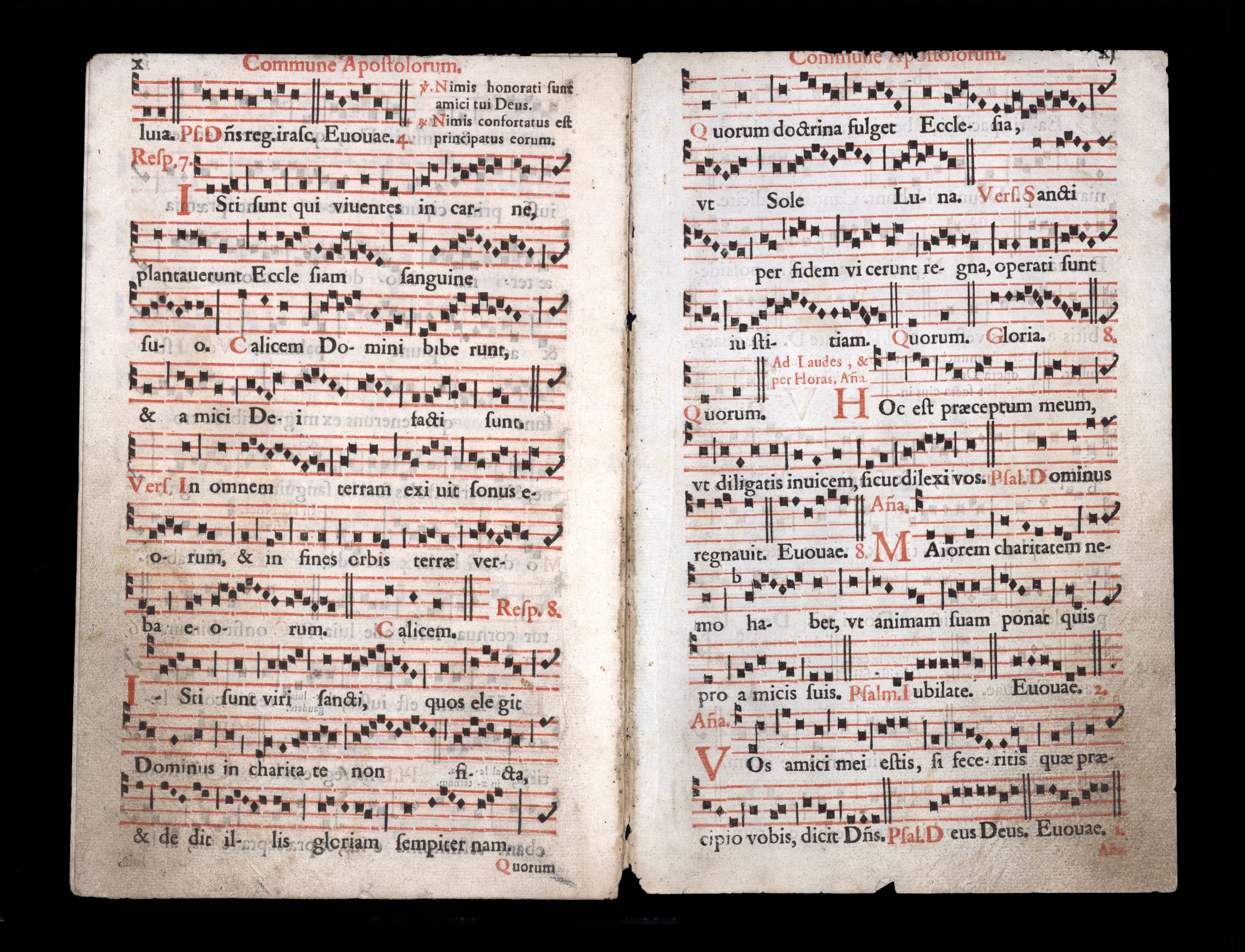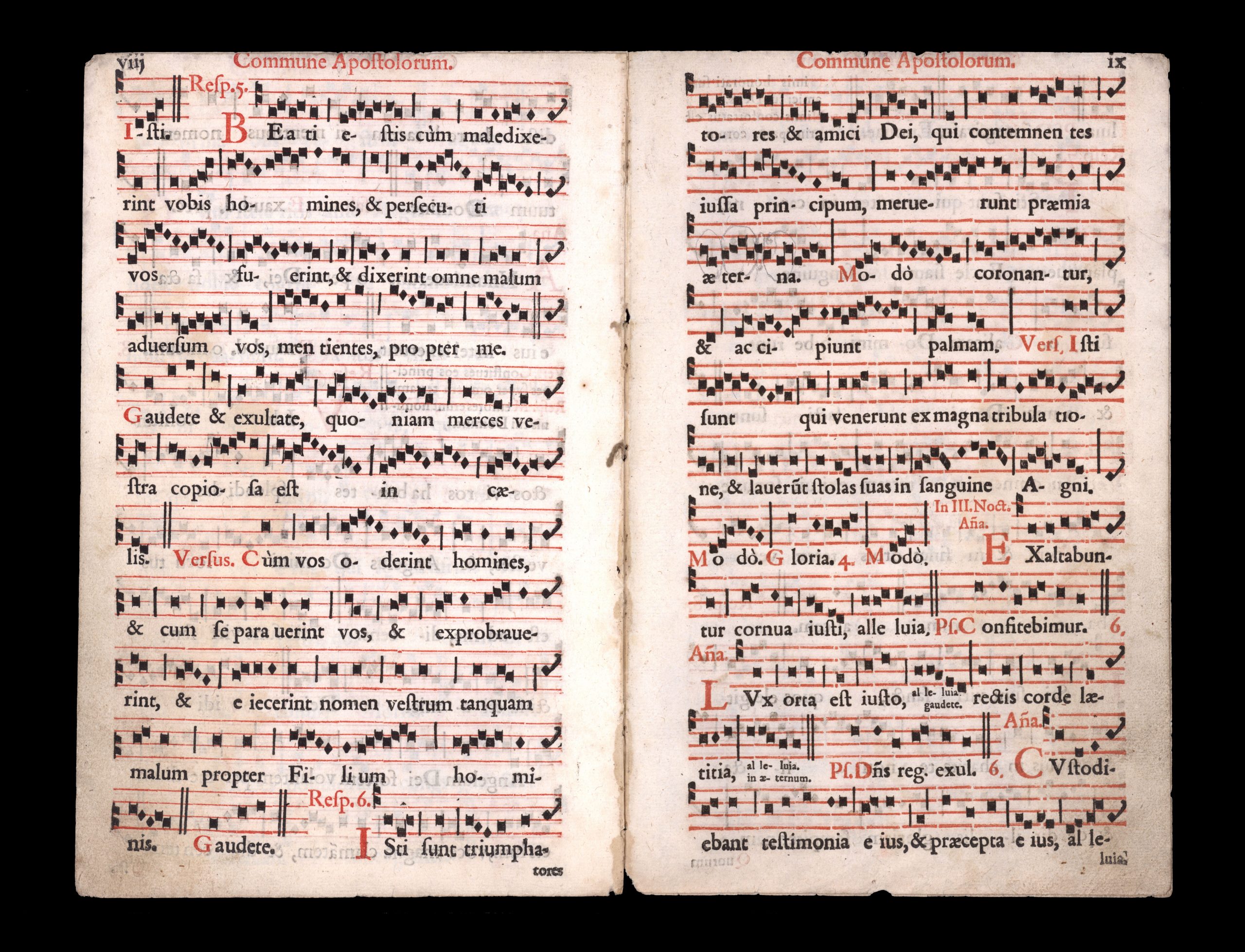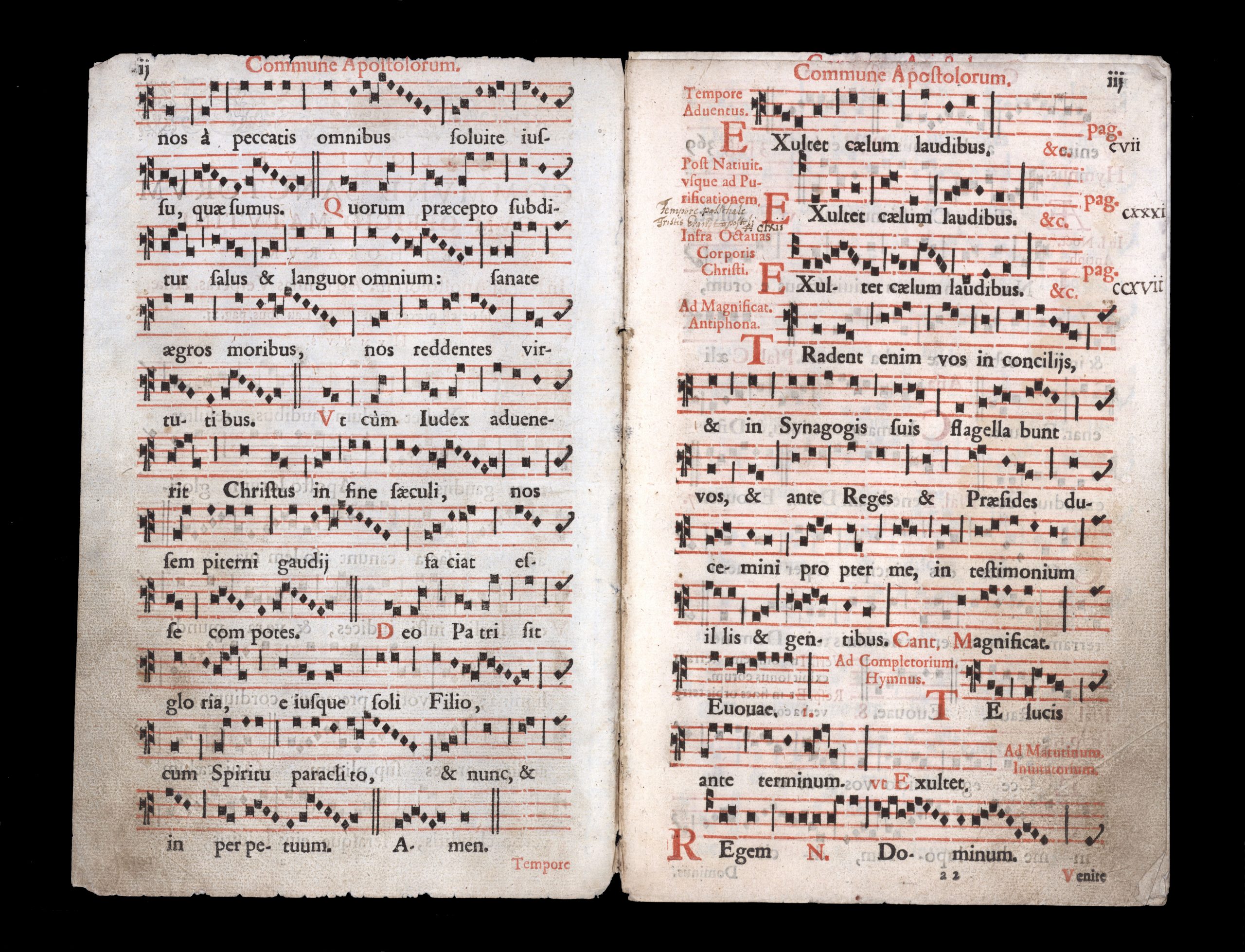 3 bifolia [from Commune Sanctorum], printed double impression on paper.
